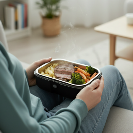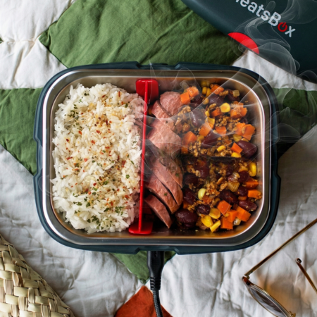 HeatsBox Style+ has got you. Plug it into a power socket and let it reheat your meals evenly to perfection with multi-sided heating, retaining the juiciness and texture of your meal.